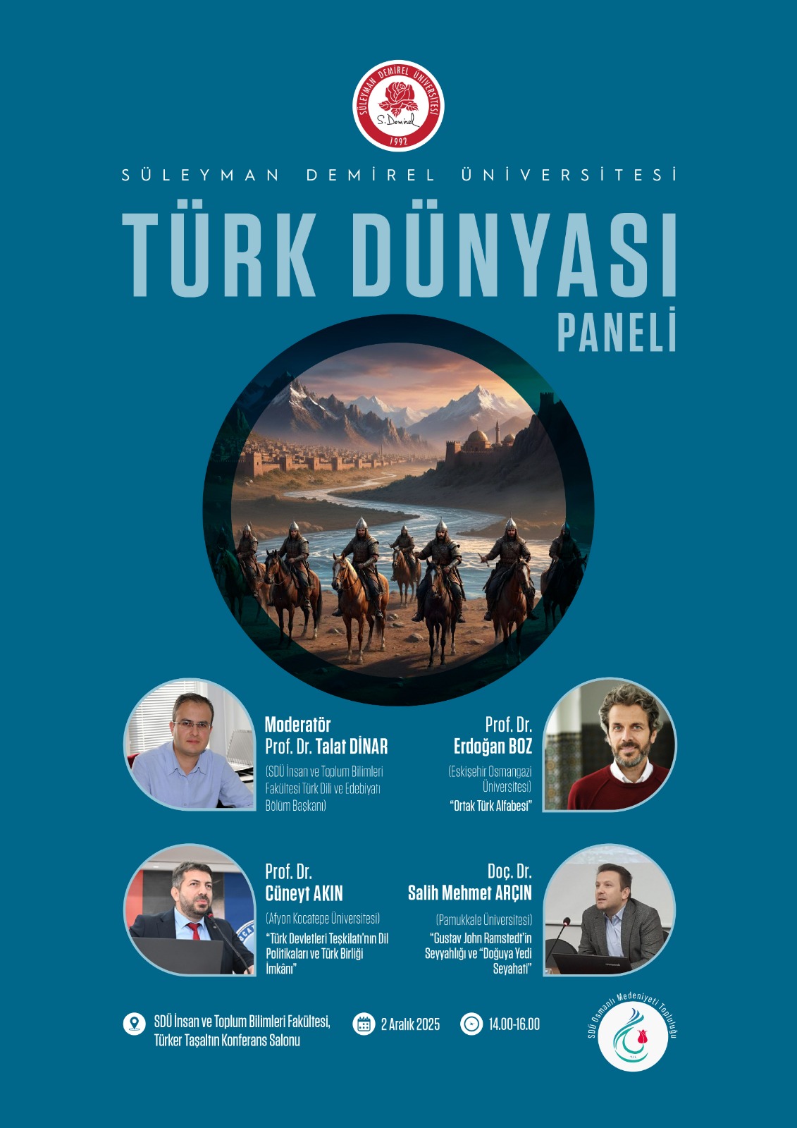 Bölümümüz tarafından 02.12.2025 tarihinde 14.00-16.00 saatleri arasında Türker Taşaltın Konferans Salonu'nda 'Türk Dünyası' konulu bir panel düzenlenecektir.