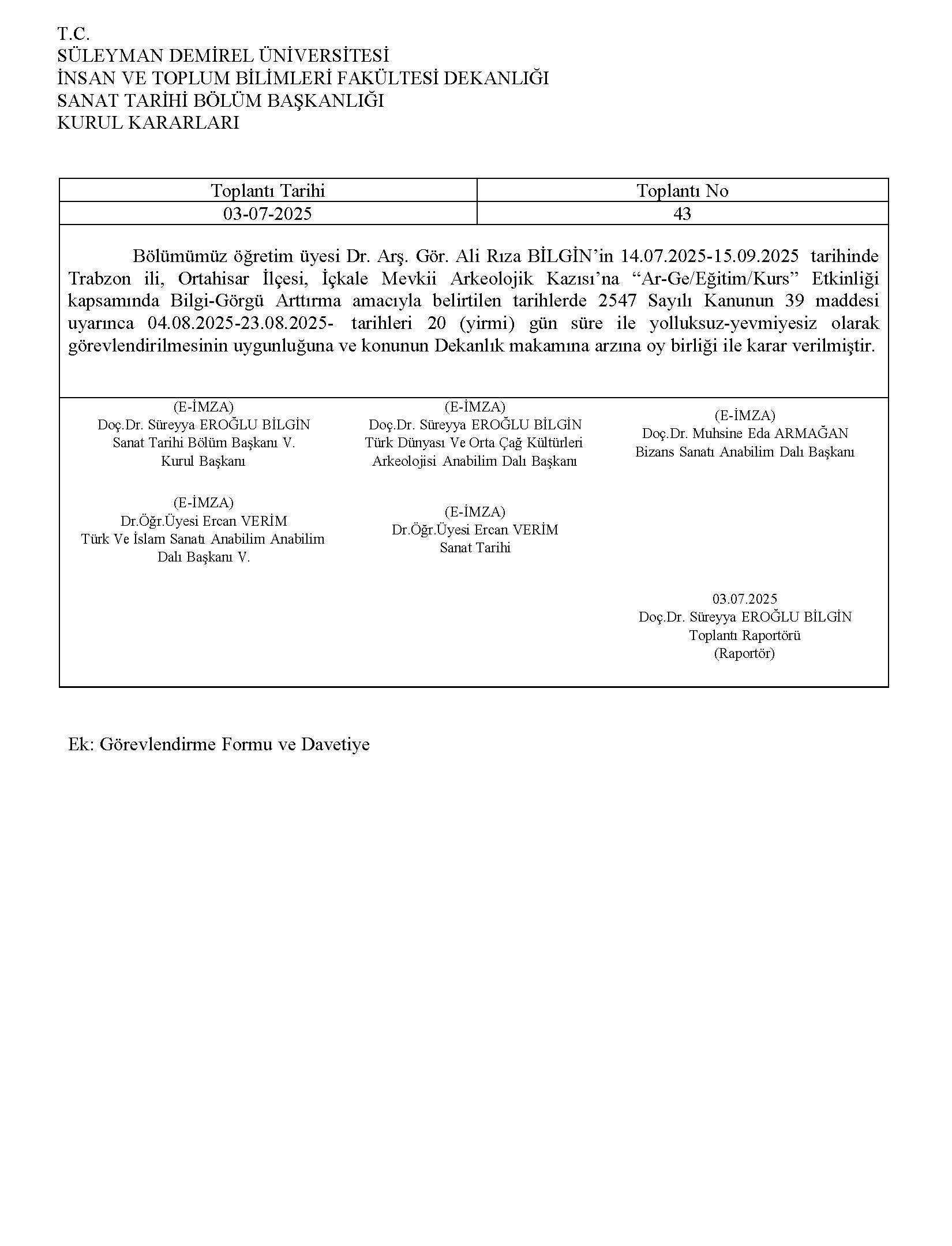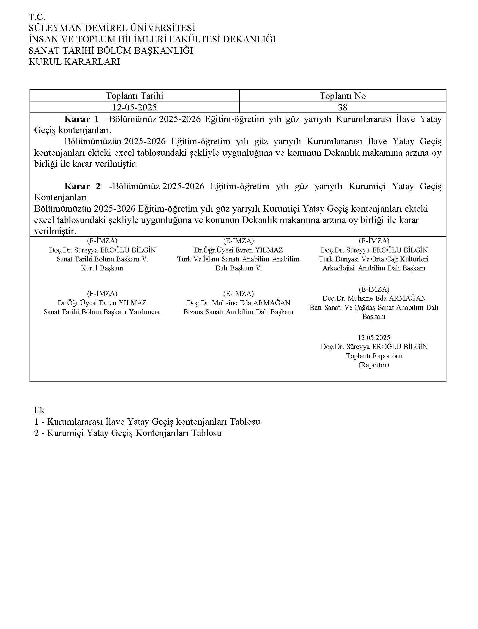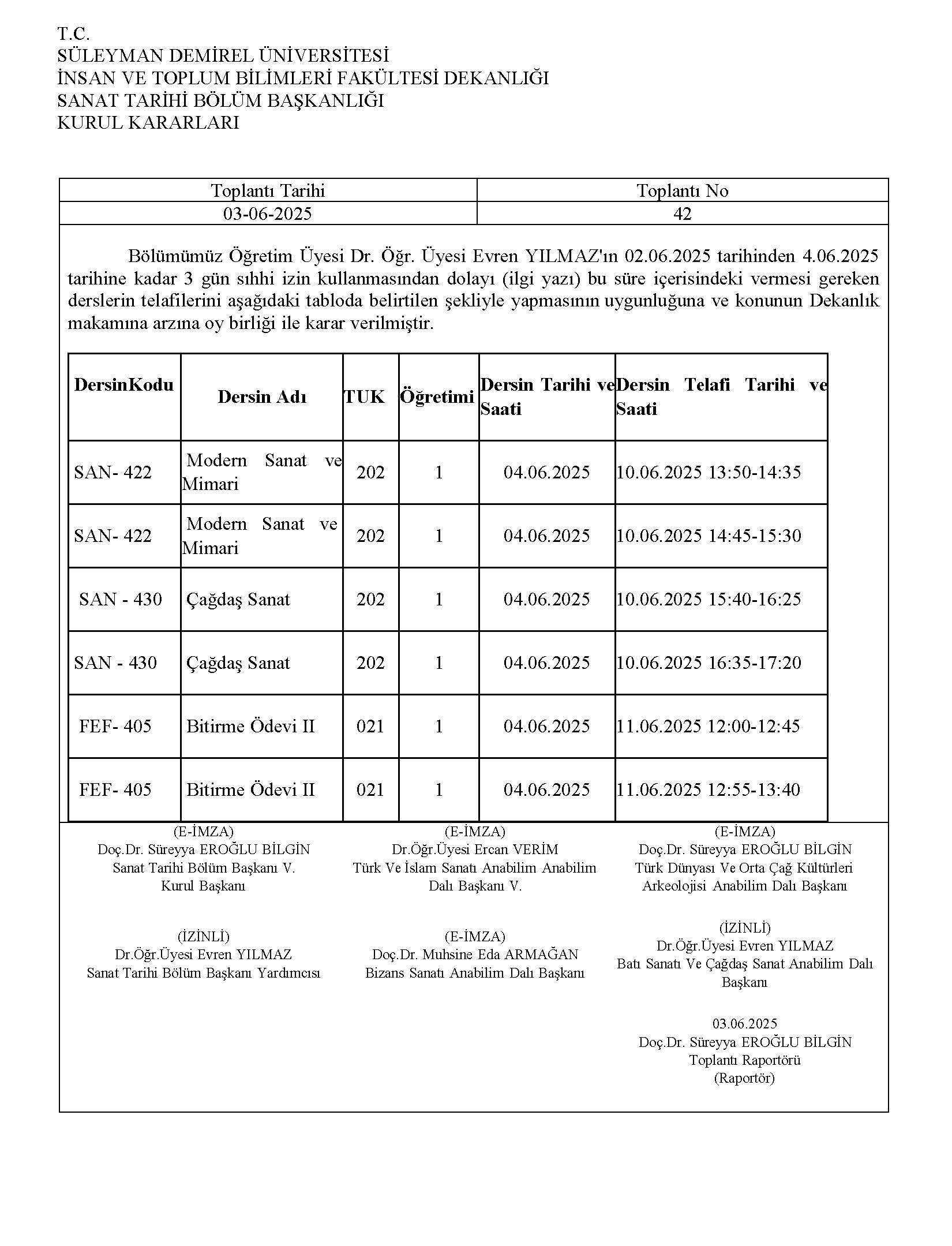 2022-2023 Eğitim Öğretim Yılı Danışmanlık Toplantıları 1. Sınıf Danışmanlık Toplantısı Tutanağı 2023-2024 Eğitim Öğretim Yılı Danışmanlık Toplantıları 1. Sınıf Danışmanlık Toplantısı Tutanağı 2 ve 3. Sınıflar Danışmanlık Toplantısı Tutanağı 4. Sınıf Danışmanlık Toplantısı Tutanağı 2024-2025 Eğitim Öğretim Yılı Danışmanlık Toplantıları 1. Sınıf Danışmanlık Toplantısı Tutanağı Bölüm Kurulu Kararları