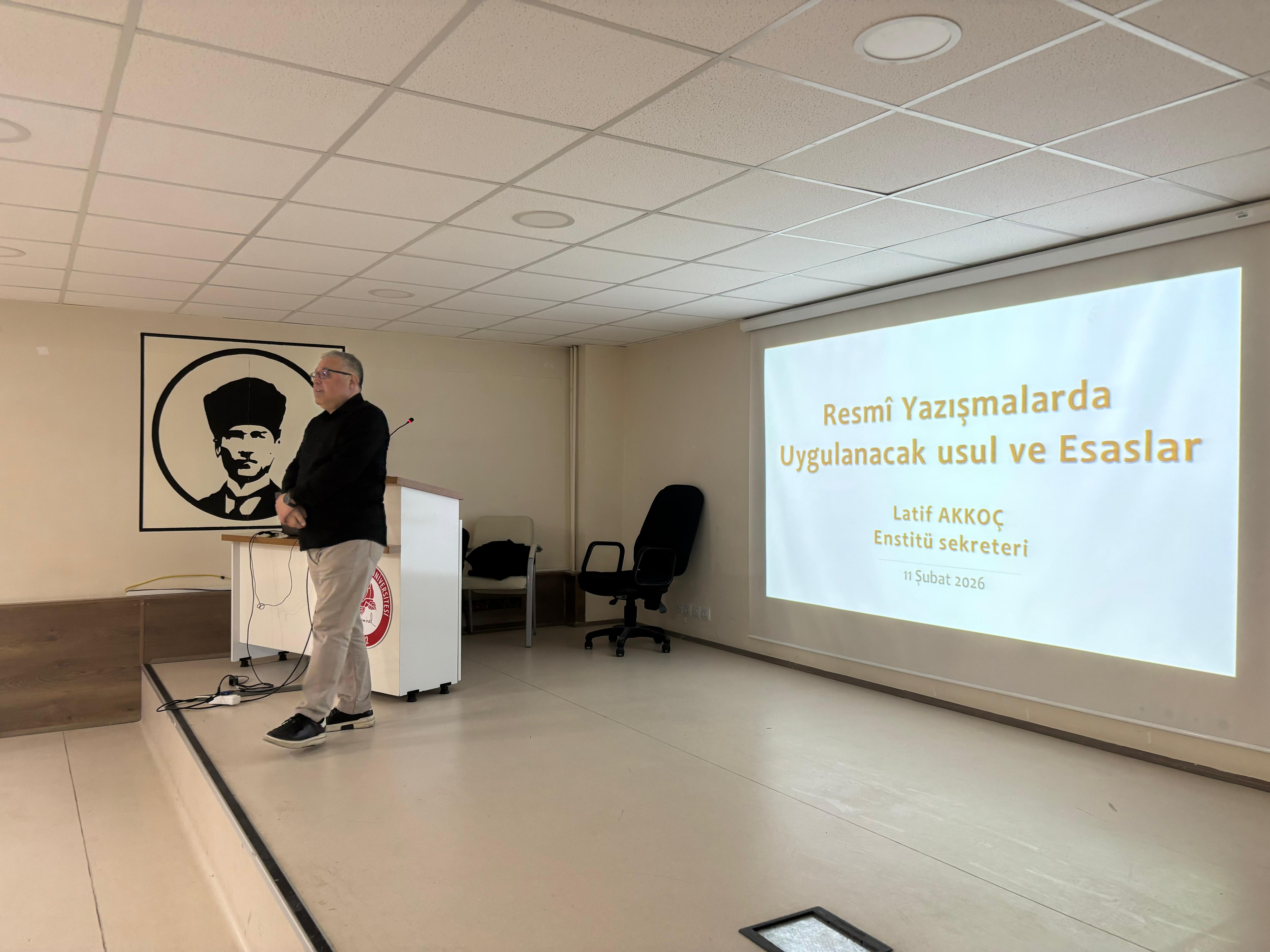 Fakültemizde görev yapan idari personele 10 Şubat 2026 tarihinde Öğr. Gör. Hatice MESCİ ve 11 Şubat 2026 tarihinde Latif AKKOÇ tarafından "Resmî Yazışma Kuralları" başlıklı eğitim verildi. Eğitim fakültemiz Türker Taşaltın Konferans Salonu'nda gerçekleştirdi. Eğitim sonunda konuşmacılara teşekkür belgeleri takdim edildi.