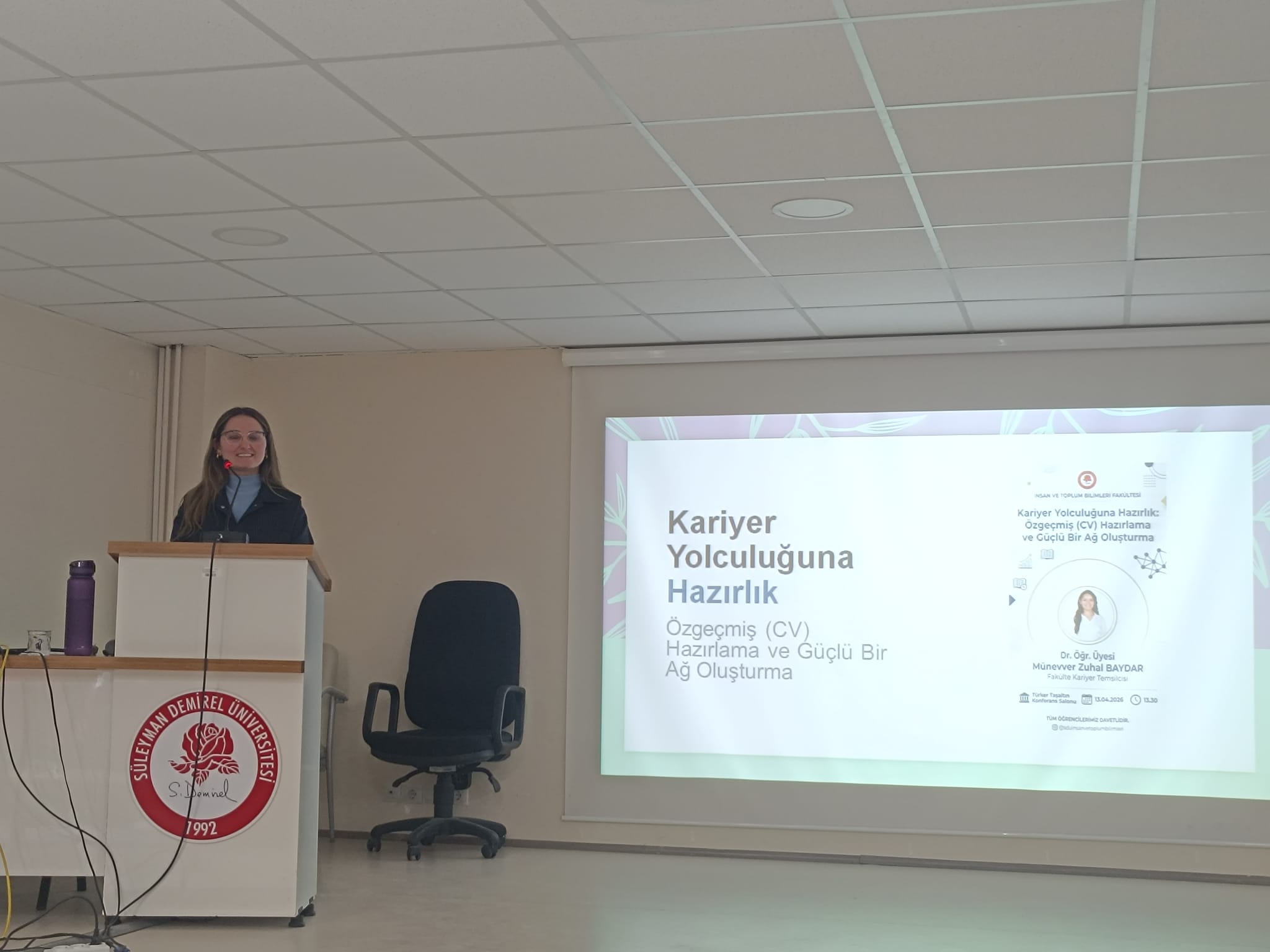 Fakültemiz Kariyer Temsilcisi Dr. Öğr. Üyesi Zuhal BAYDAR "Kariyer Yolculuğuna Hazırlık: Özgeçmiş (CV) Hazırlama ve Güçlü Bir Ağ Oluşturma" Konulu Bir Seminer Gerçekleştirdi